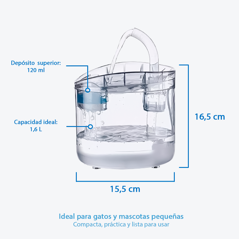 La bomba se activa sola, manteniendo el agua en movimiento constante para atraer a tu mascota a beber más.